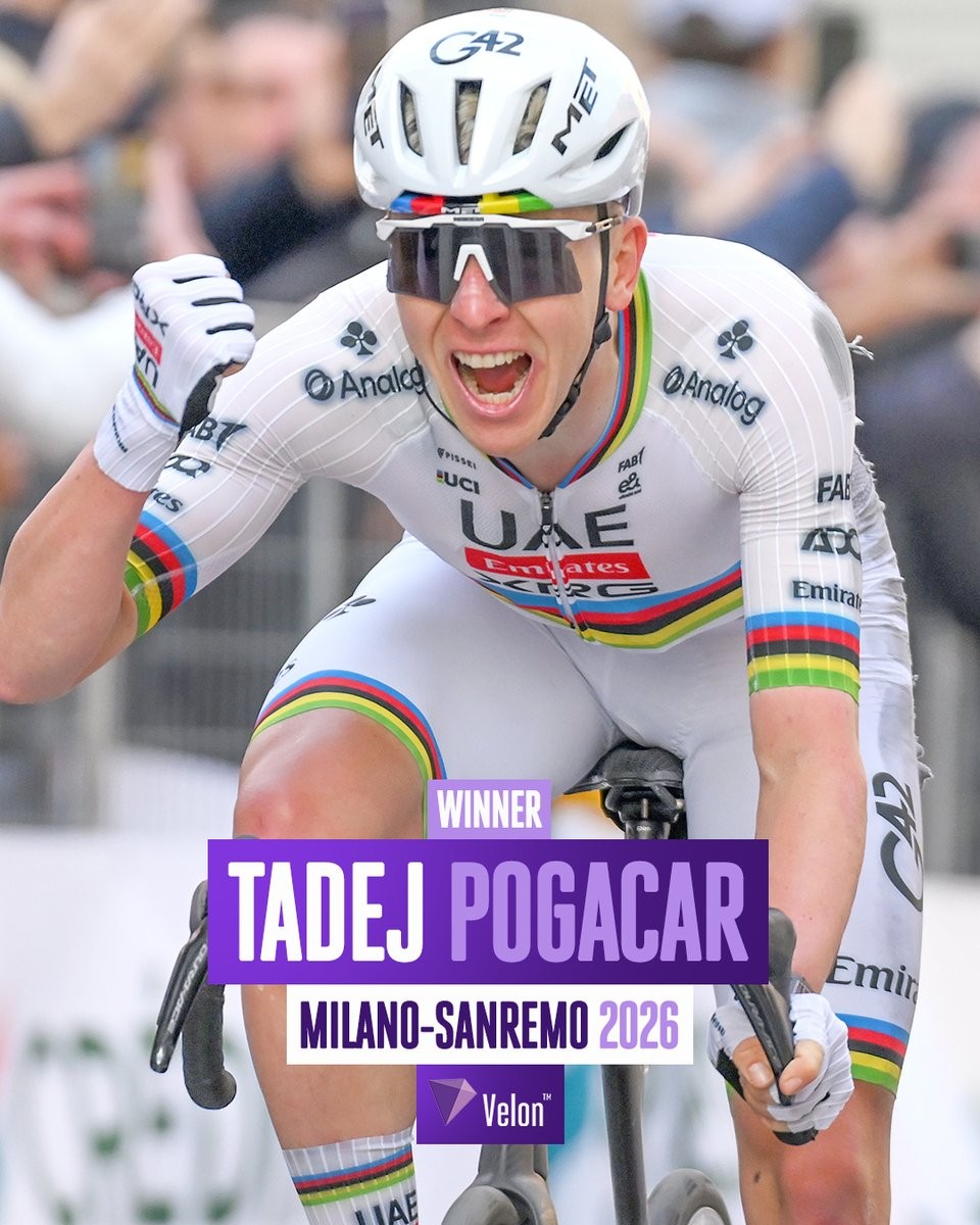 3月22日,2026年米兰-圣雷莫自行车赛,塔代伊-波加查在一度摔车掉出主车群的情况下,在奇普雷萨和波乔山两度发动进攻,最终在冲刺中击败皮德科克,首次赢下该项赛事的冠军!