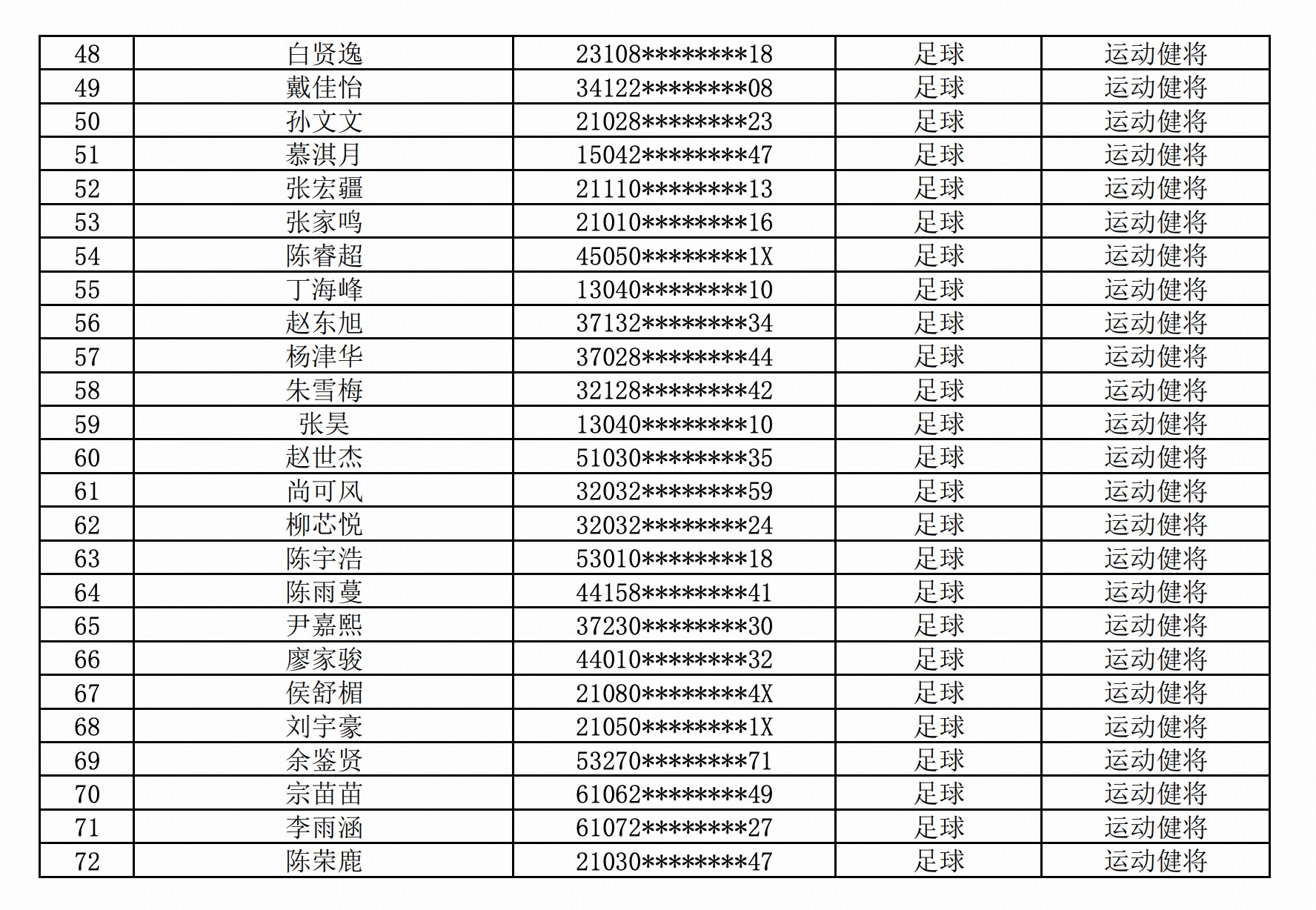 北京体育大学发布公告,经初步审核,现对进入综合考核的优秀运动员名单进行公布。 保送名单中,浙江队的陶强龙,北京国安的池忠国,成都蓉城的蹇韬等人在列。 文章导航 亨利:联赛杯决赛已经过去,我们现在必须专注联赛争冠 荷兰队发布世界杯战袍:主场橙衣黑裤,客场白底配橙色渐变条纹