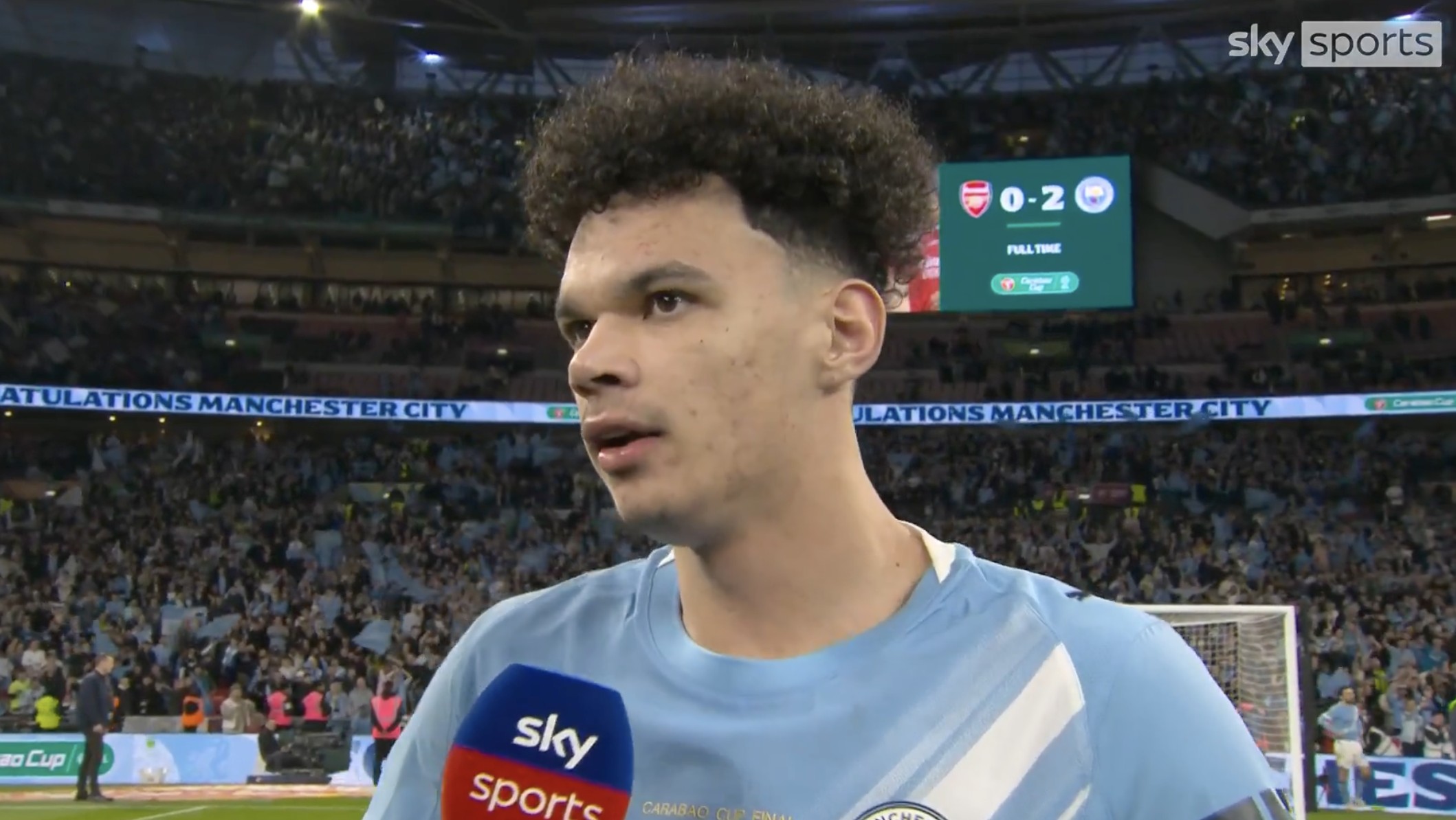 在梅开二度帮助曼城2-0击败阿森纳夺得英联杯冠军后,尼科-奥赖利接受了天空体育的采访。