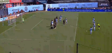 第17分钟,尼古拉斯-费尔南德斯任意球打门,皮球直接入网,纽约城1-1