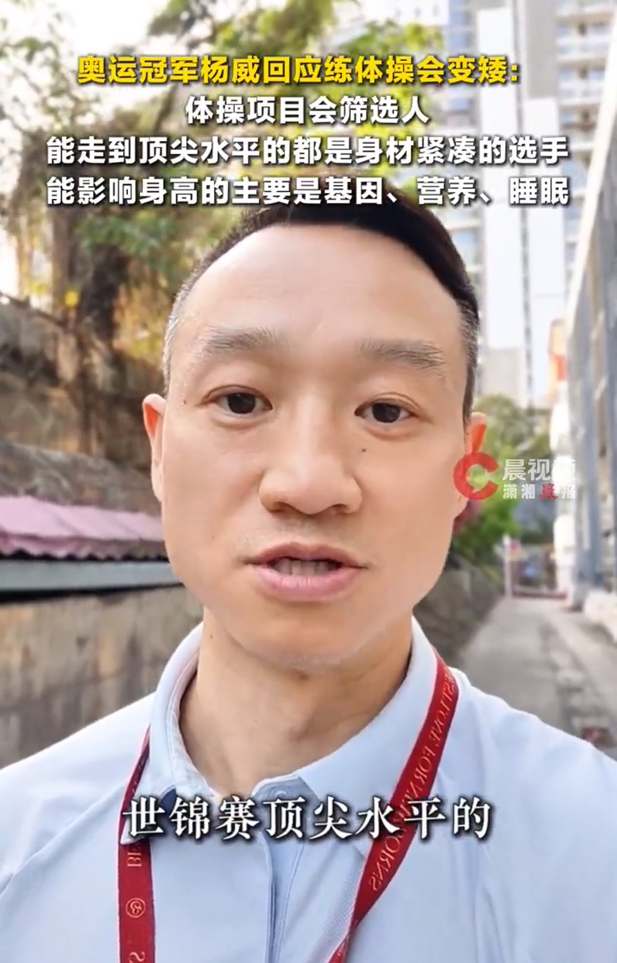 杨威表示:不是练体操让人变矮,而是体操这个项目本身会筛选人。大部分能走到奥运会、世锦赛顶尖水平的都是身材紧凑的选手。身高还是看基因营养和睡眠。