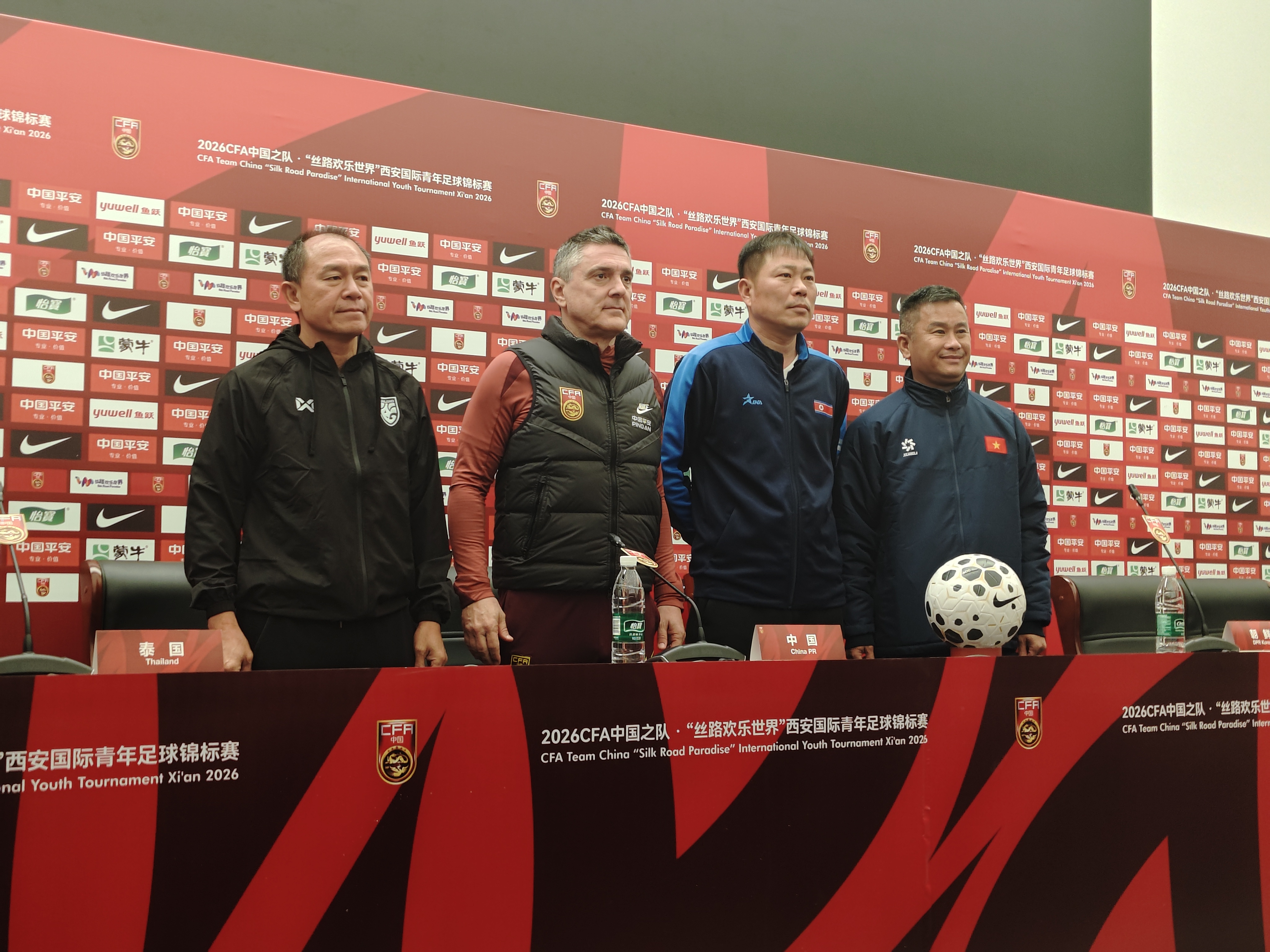 北京时间3月24日,西安邀请赛开赛前,参加本次比赛的四国主帅一同出席了新闻发布会。内容来自吉林绿茵ECHO记者单中泽。