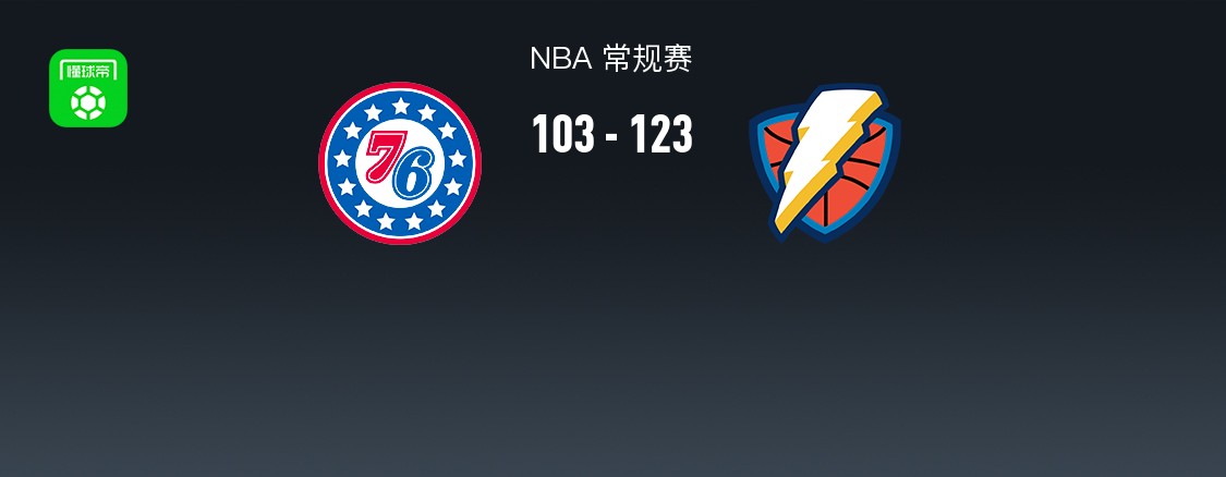 第四节76人VJ-埃奇库姆拿下10分,雷霆霍姆格伦拿下7分,最终76人103-123不敌雷霆