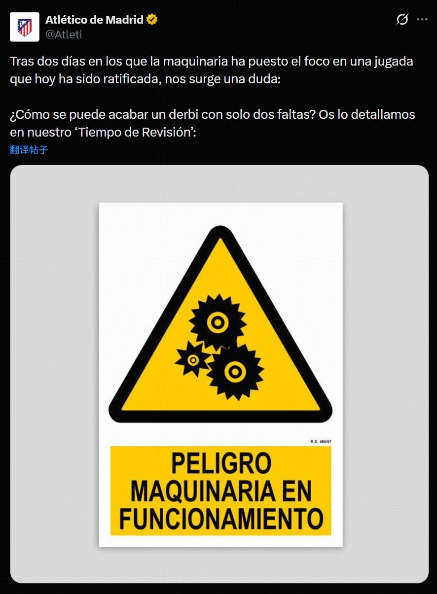 北京时间3月25日,马德里竞技官方在官方社交媒体分享马德里德比比赛片段,炮轰马德里德比判罚不公。
