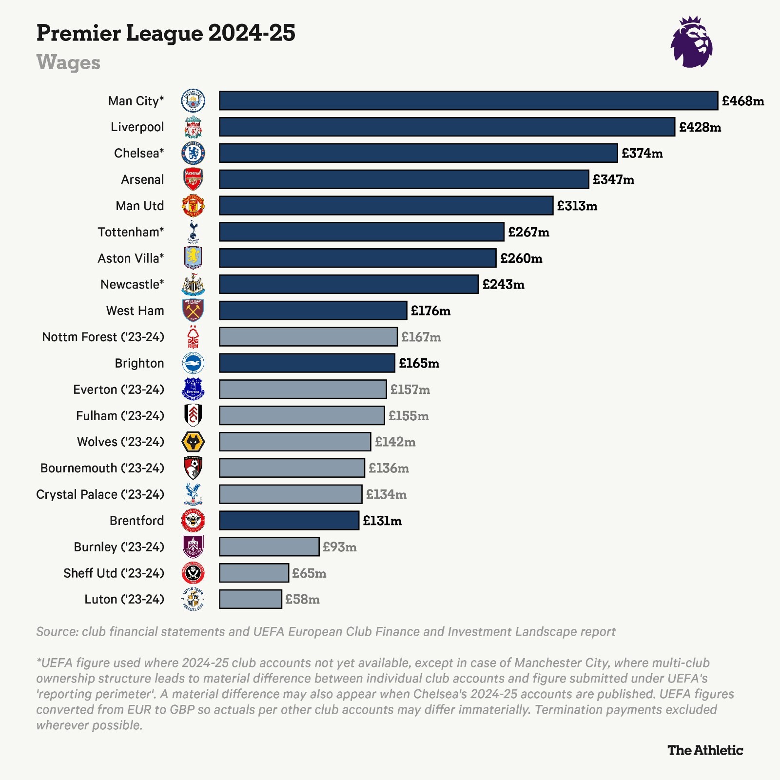 俱乐部的相关成本将被限制在收入的85%(对于参加欧战的俱乐部,由于欧足联的规定,这一比例为70%),而利物浦几乎肯定会参加欧战。这意味着控制工资支出比以往任何时候都更加重要。如果收入下降(例如,因为球队未能获得欧冠资格),这一点就尤为关键。