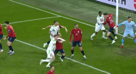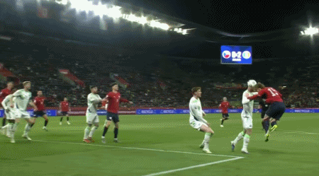 第23分钟,曹法尔头球解围,皮球击中横梁打在科瓦日身上入网,爱尔兰2-0