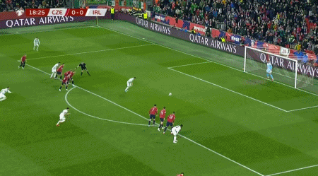 第17分钟,内森-科林斯造点,帕罗特主罚点球命中,爱尔兰1-0捷克