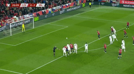 第27分钟,克雷伊奇造点,希克主罚点球命中,捷克1-2爱尔兰