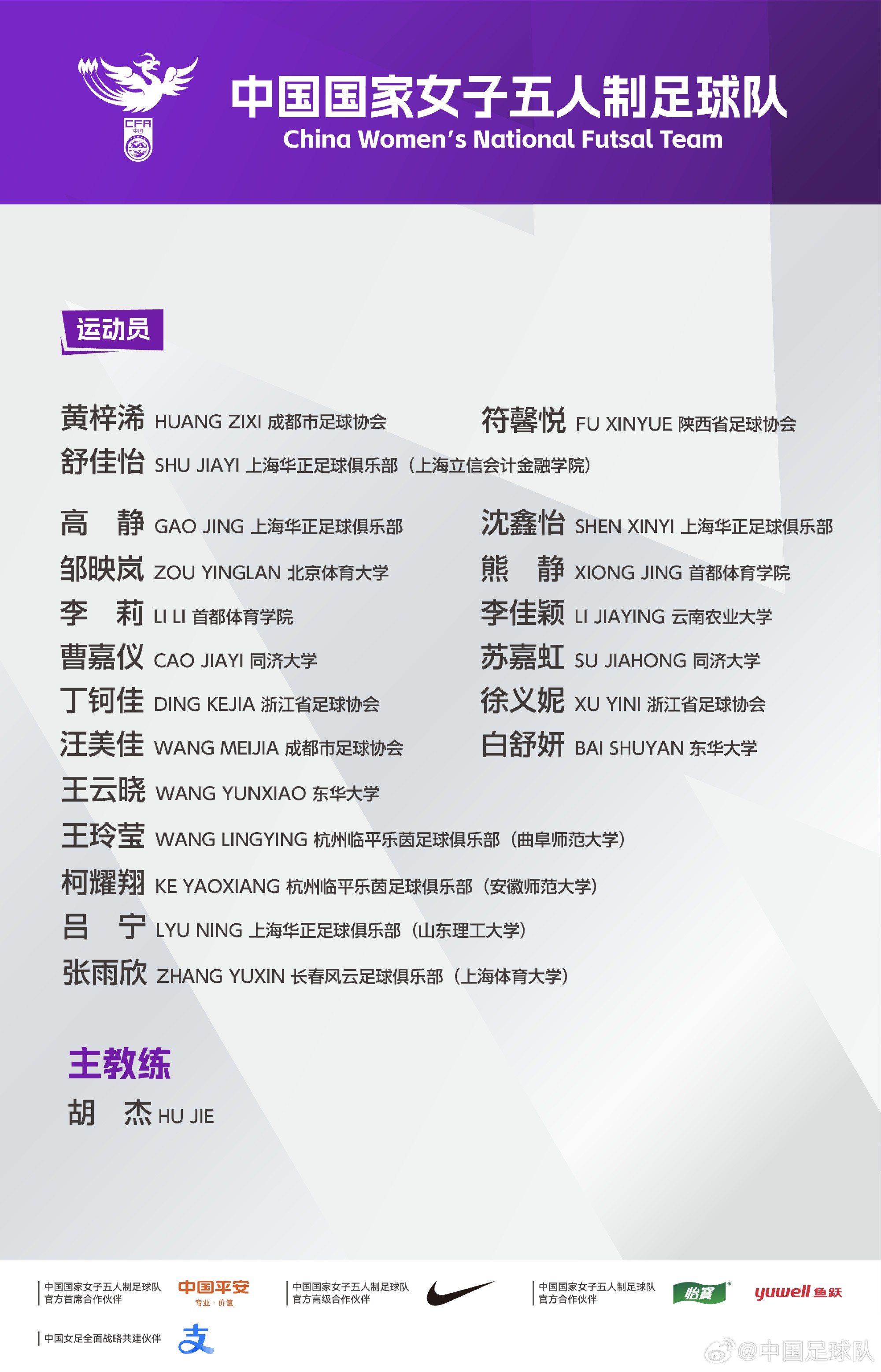 上海华正足球俱乐部:高静、沈鑫怡、舒佳怡(上海立信会计金融学院),吕宁(山东理工大学)