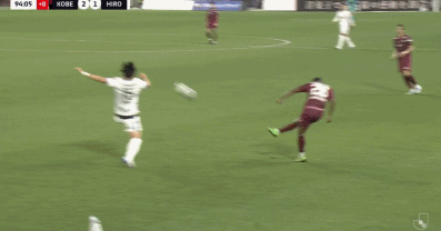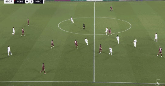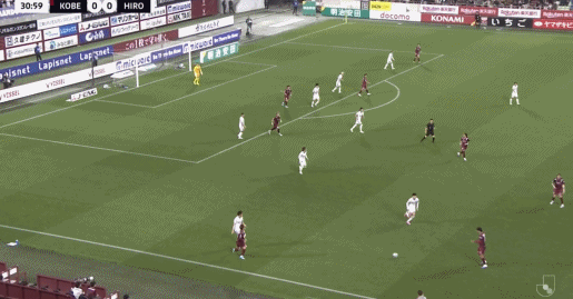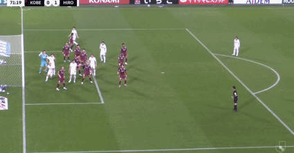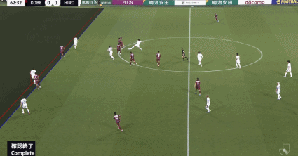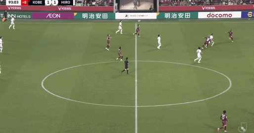 第90+4分钟,广濑陆斗头球中柱,大迫勇也补射破门,神户胜利船2-1!