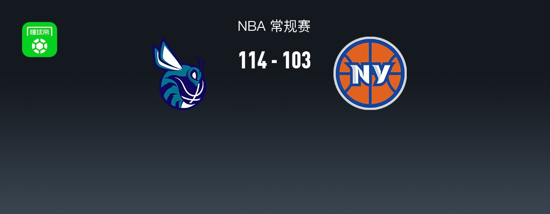 第四节黄蜂布兰登-米勒拿下5分,尼克斯约什-哈特拿下12分,最终黄蜂114-103战胜尼克斯