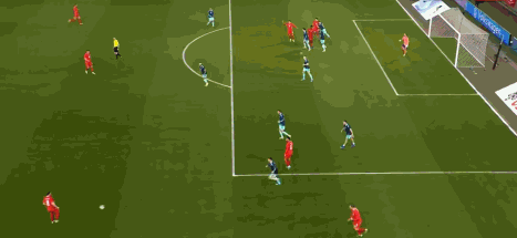 第14分钟,格纳布里射门,击中门前的队友