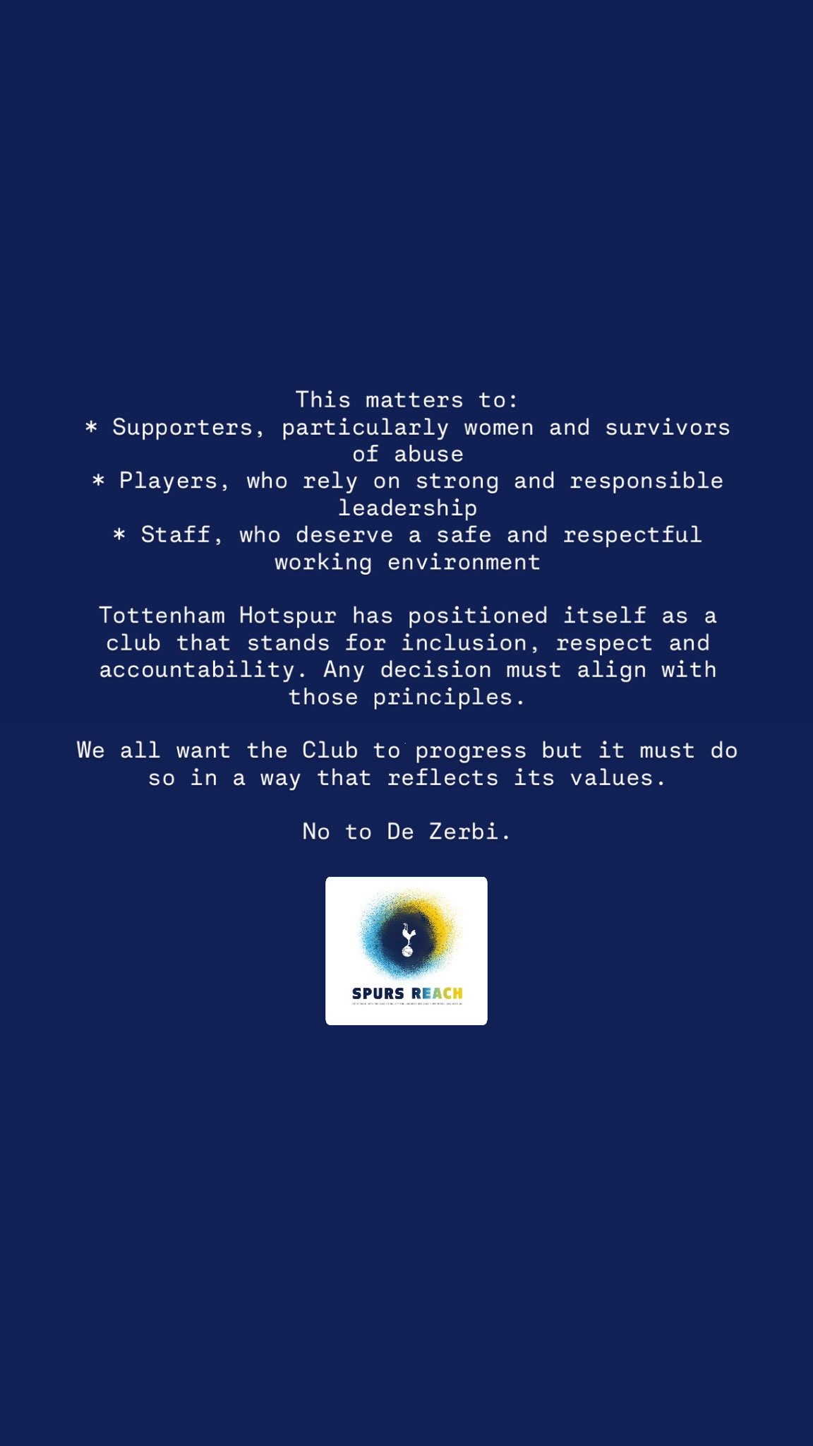 托特纳姆热刺一直将自身定位为一家秉持包容、尊重与问责理念的俱乐部。任何决策都必须与这些原则保持一致。