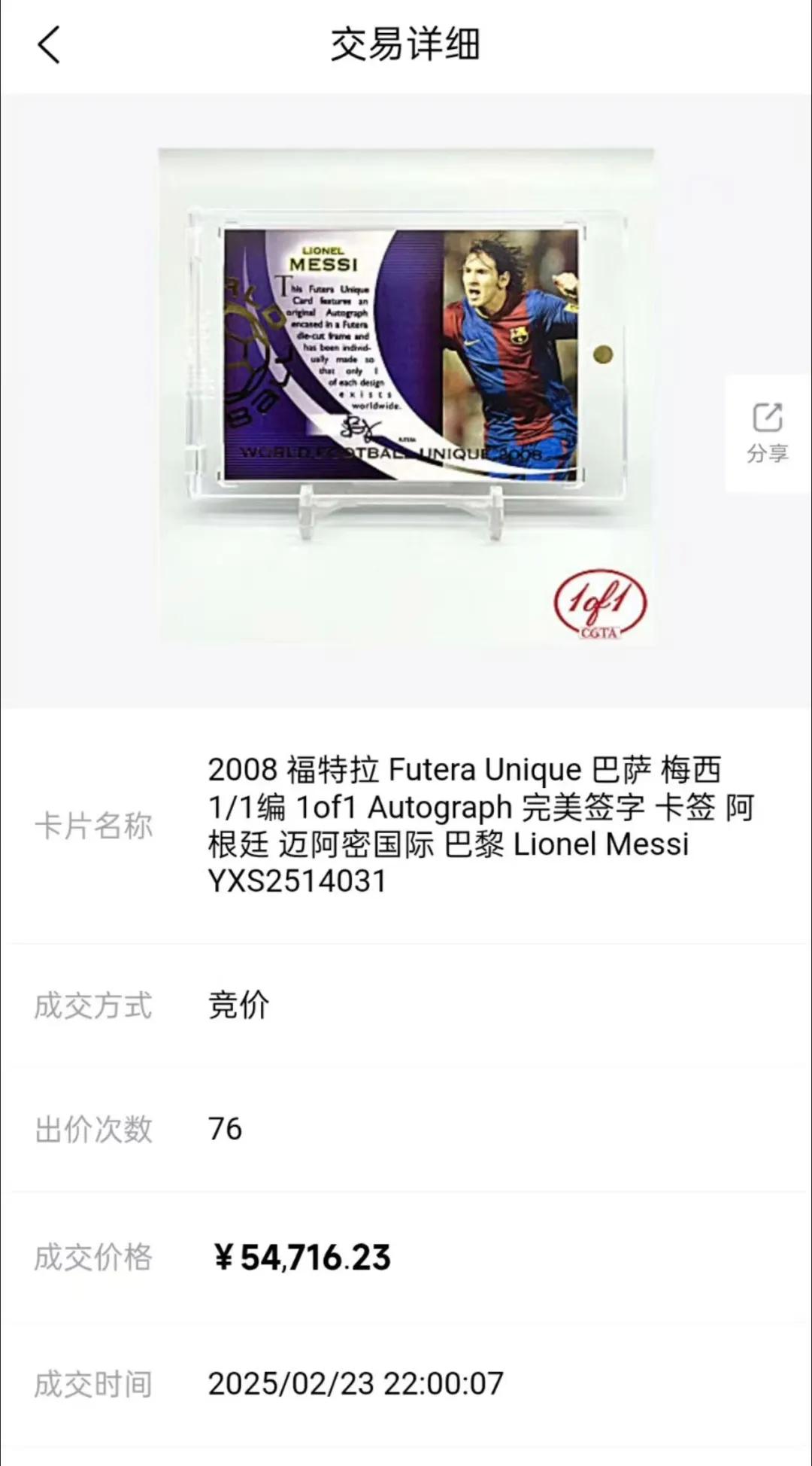 据悉,此次交易通过国内一家知名卡社在上海完成,买家身份尚未公开。圈内普遍猜测,可能是顶级梅西收藏者,亦或是看好足球卡市场前景的高端藏家。但无论是谁,背后的共识在于:这张卡在梅西收藏体系中的地位不可替代。