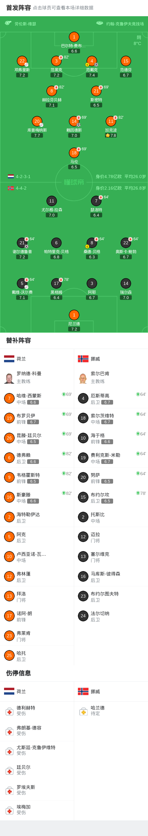 第35分钟,库普梅纳斯助攻,范戴克头槌破门,荷兰1-1挪威
