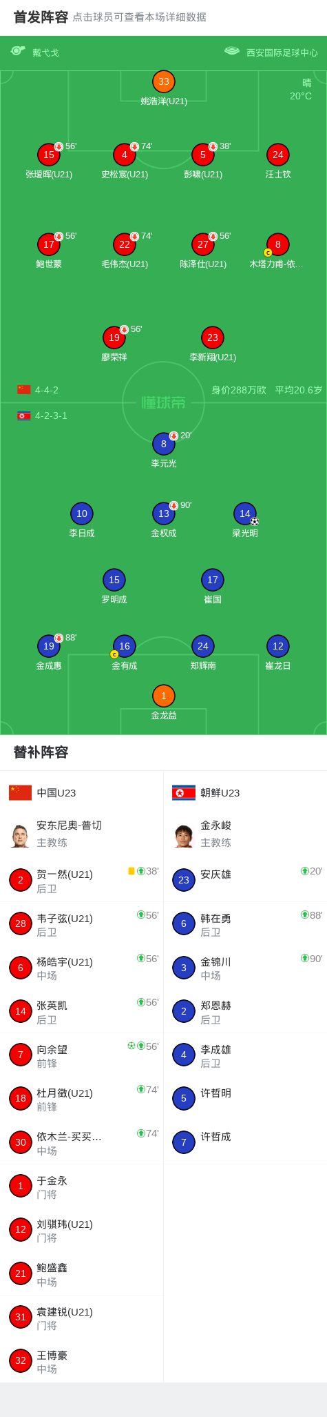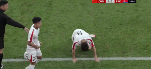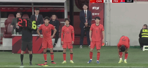 第20分钟,朝鲜U23换人,李元光伤退,安庆雄登场