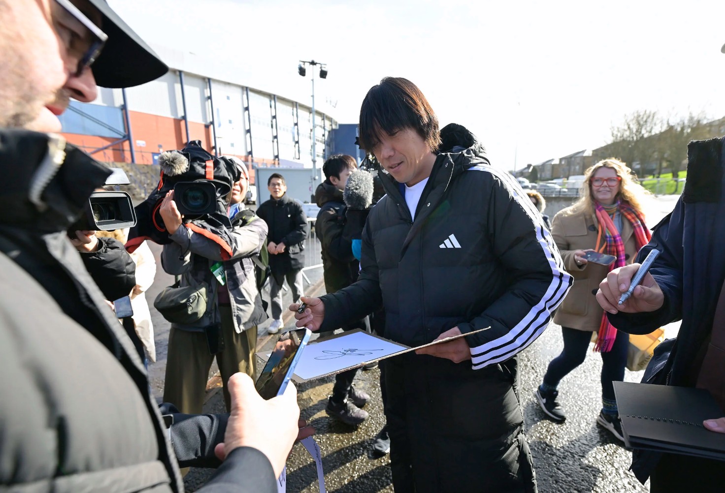 当天,无论是现场的球迷、俱乐部工作人员,还是日本队成员,都对他的到来表现出热烈欢迎和极大兴趣。