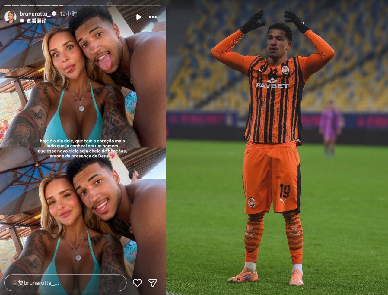 罗德里戈前女友Bruna Rotta在社交媒体官宣新恋情,新男友是巴西球员考阿-埃利亚斯,目前效力于顿涅茨克矿工。