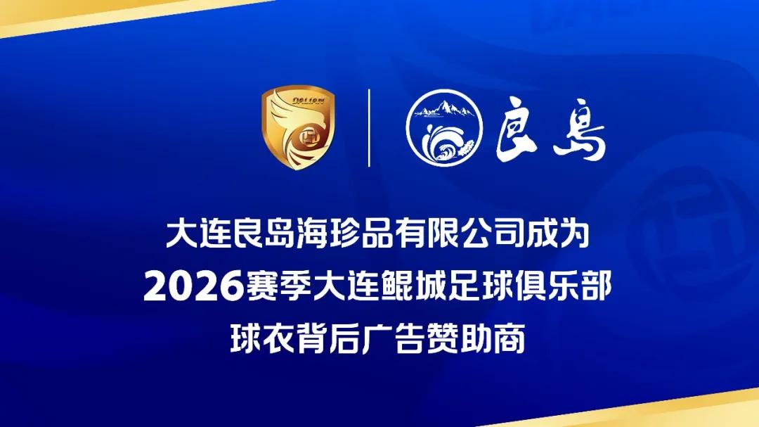 北京时间3月29日,大连鲲城官方宣布,大连良岛海珍品有限公司正式成为俱乐部2026赛季球衣背后广告赞助商。