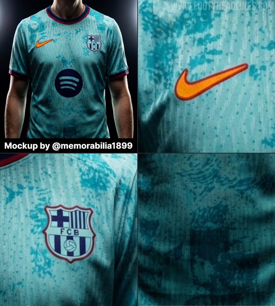 3月29日,足球装备网站Footyheadlines曝光了巴萨2026-27赛季第二套客场球衣的首批细节图。
