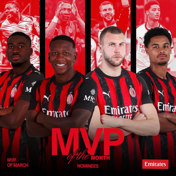 北京时间3月30日,米兰官方公布了队内3月最佳球员的候选名单,其中,优素福-福法纳、埃斯图皮尼安、帕夫洛维奇和德温特在列。