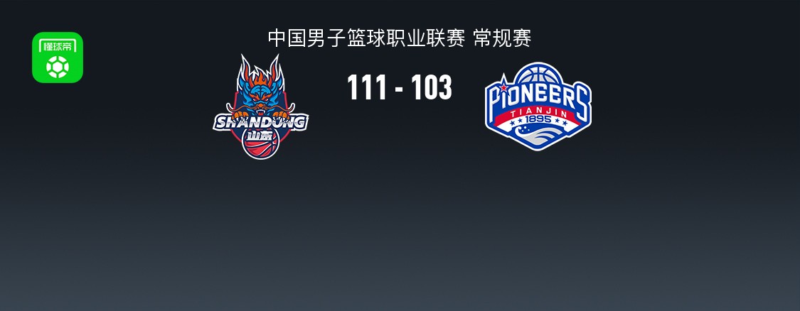 第四节山东郭凯拿下8分,天津林庭谦拿下9分,最终山东111-103战胜天津