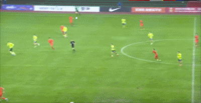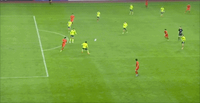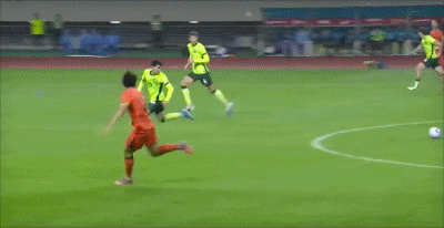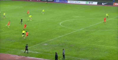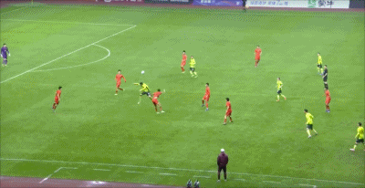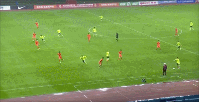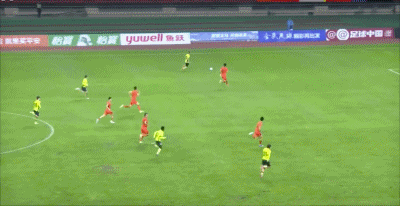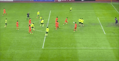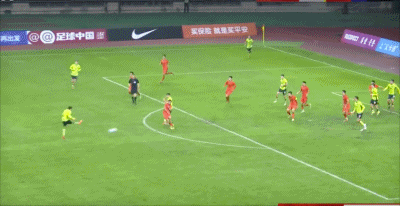 第44分钟,颇具威胁!杨杨任意球射门稍稍打偏
