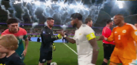 双方球员入场,比赛马上开始