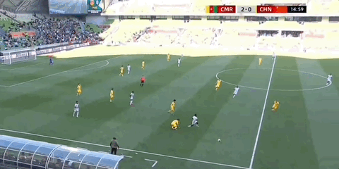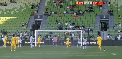 第9分钟,喀麦隆角球配合,阿利乌姆后点爆射破门,国足0-2落后