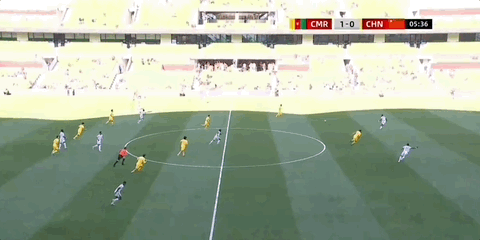 第9分钟,喀麦隆角球配合,阿利乌姆后点爆射破门,国足0-2落后