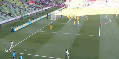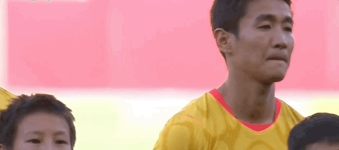 第33分钟,国足双人争顶头球攻门,门将出击摘下皮球