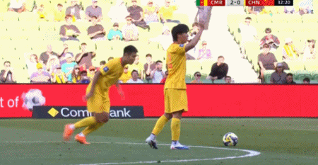 第21分钟,徐彬失误喀麦隆传中被刘浩帆断球,随后喀麦隆反抢犯规
