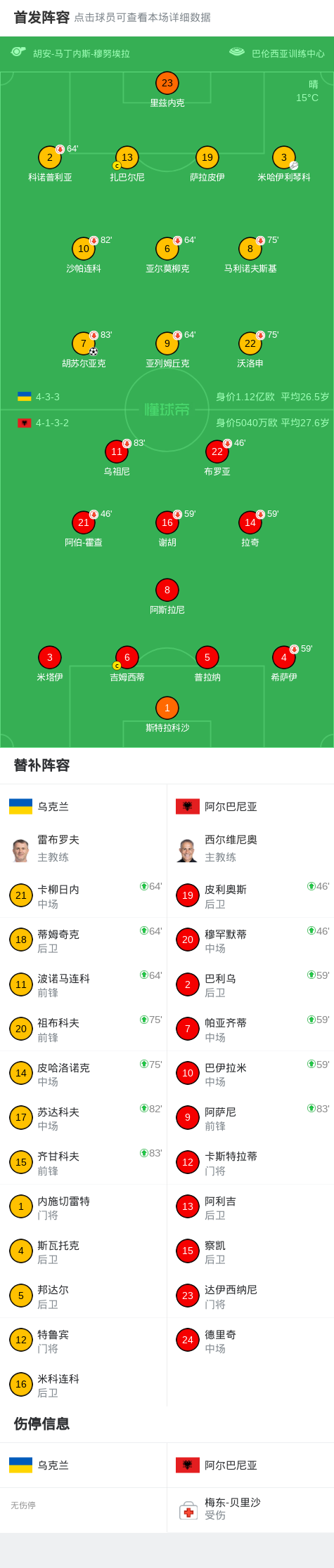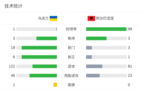 北京时间4月1日国际友谊赛,乌克兰对阵阿尔巴尼亚。乌克兰胡苏尔亚克破门。最终比分乌克兰 1–0 阿尔巴尼亚。 点击查看本场比赛详细数据>> 精彩瞬间 第46分钟,乌克兰球员米哈伊利琴科助攻胡苏尔亚克打入一球。 球队阵容 技术统计 文章导航 友谊赛替补登场,霍安-加西亚上演西班牙国家队首秀 威尔士1-1北爱尔兰,杰米-唐利打破僵局,索尔巴-托马斯扳平比分