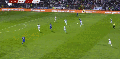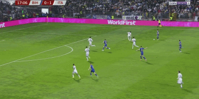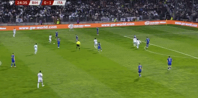 北京时间4月1日世界杯欧洲区预选赛 附加赛决赛,波黑对阵意大利。意大利莫伊塞-基恩破门。半场战罢,场上比分波黑 01 意大利。