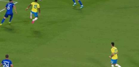 第45+2分钟,维尼修斯奔袭送助攻,达尼洛推射破门,巴西1-0!