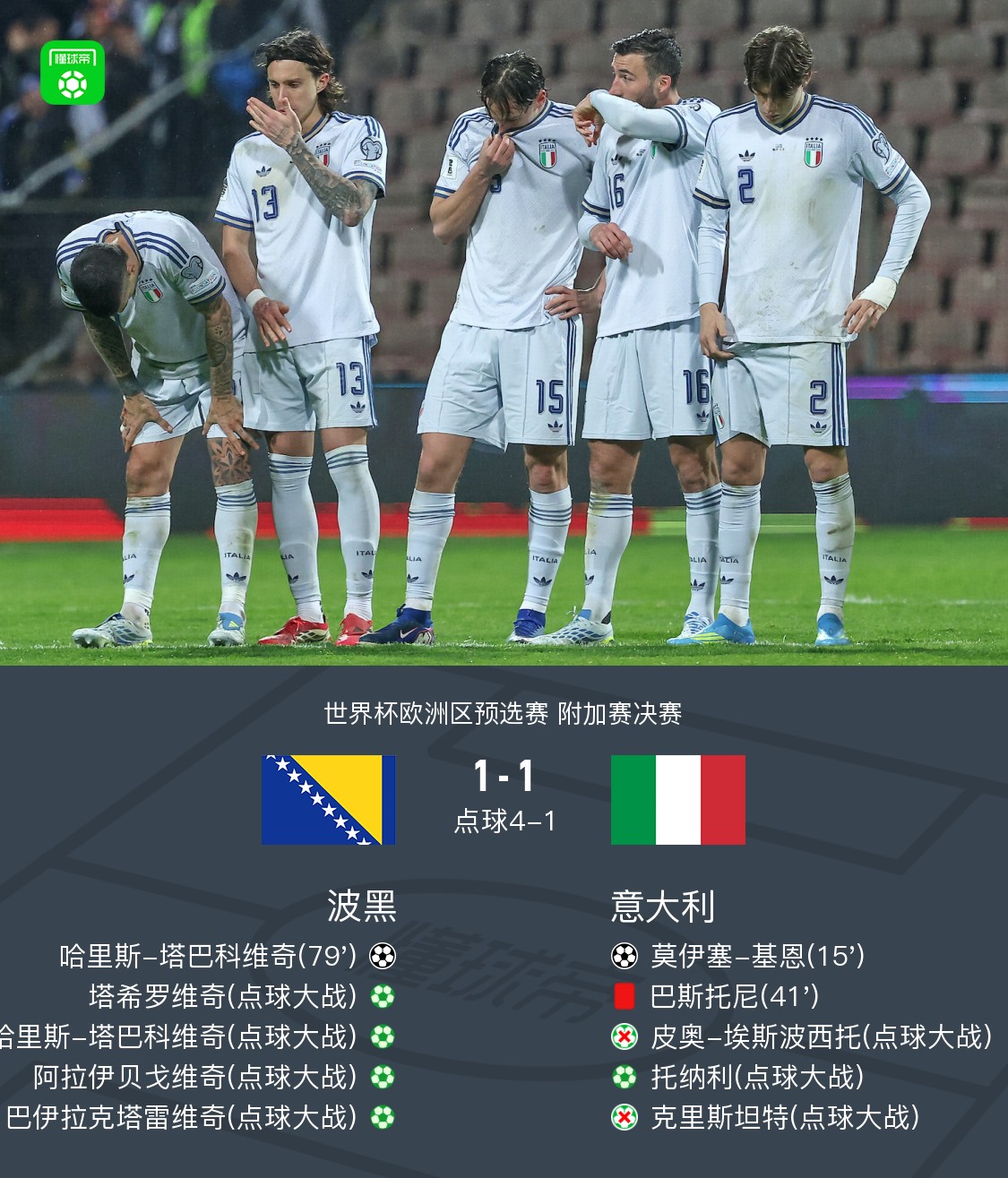 【十人意大利总比分2-5波黑连续三届未进世界杯,巴斯托尼直红】