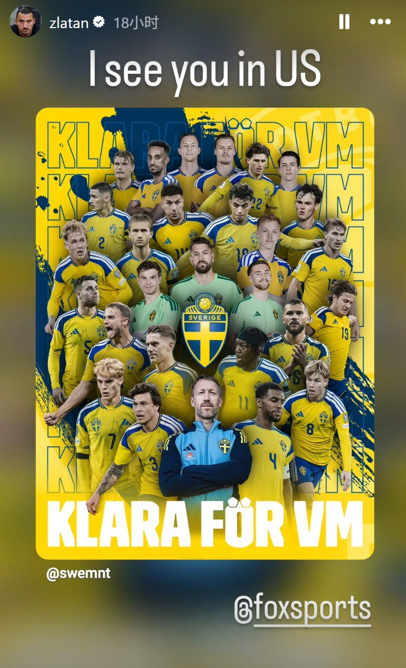 在2026年美加墨世界杯欧洲区附加赛决赛中,瑞典队以3-2力克波兰,锁定正赛席位。赛后,伊布在社媒上晒出球队海报,并写道:“美国见。”伊布此前曾宣布自己将搭档亨利一同出任福克斯体育今夏世界杯解说嘉宾,届时他也将前往美国解说本届世界杯。