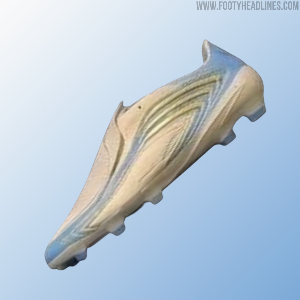 鞋身的白色基调清爽干净,天蓝色点缀与流线型曲线呼应阿根廷队传统风格,金色细节则作为奢华点缀。三条标志性条纹设计锋利且富有攻击感,融入鞋面形成“爪子”形态,整体造型精致且力量感十足。