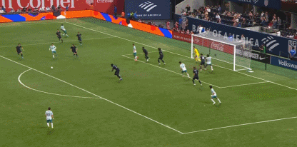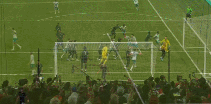 第6分钟,麦肯尼抢点头槌,皮球稍稍偏出