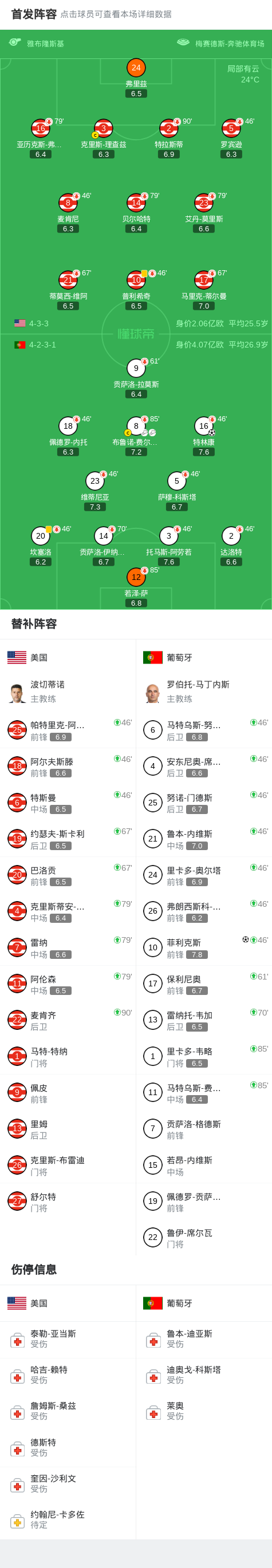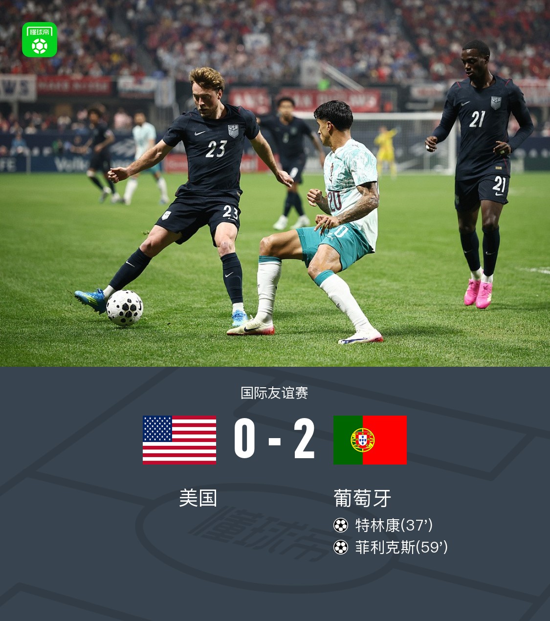 北京时间4月1日国际友谊赛,美国对阵葡萄牙。葡萄牙特林康破门,菲利克斯破门。最终比分美国 0–2 葡萄牙。