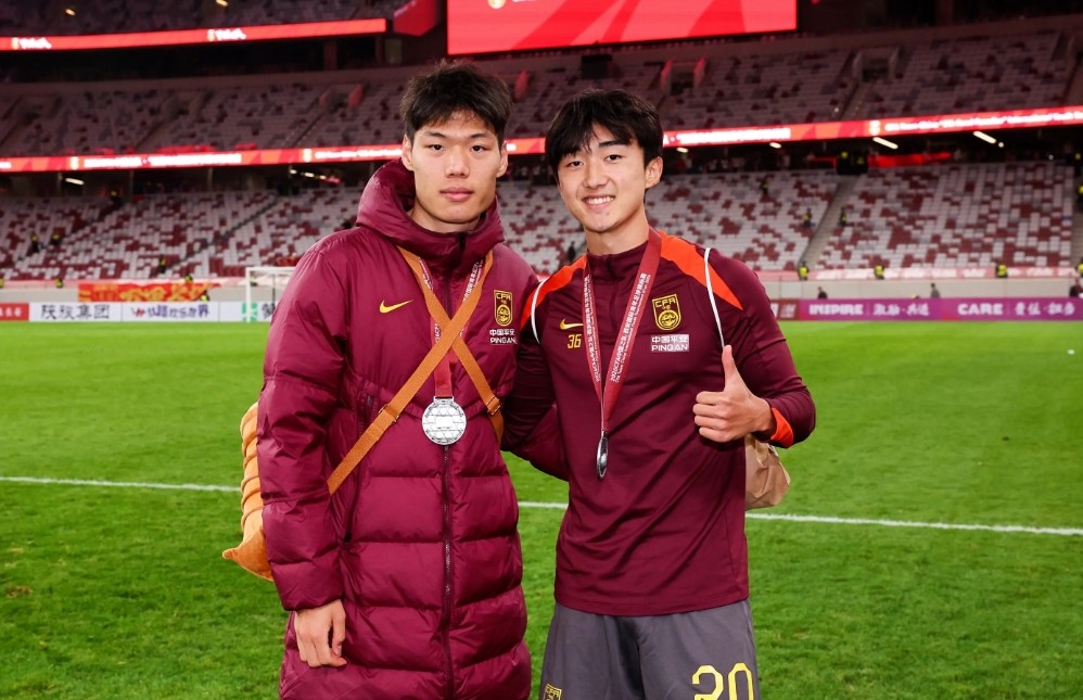 3月31日,2026CFA中国之队·“丝路欢乐世界”西安国际青年足球锦标赛第3轮,U23国足1-0战胜越南队,获得亚军。U23国足球员玄智健和贺一然在社交媒体里晒出合影并相互寄语:“顶峰相见。祝我们在新的俱乐部一切顺利!”