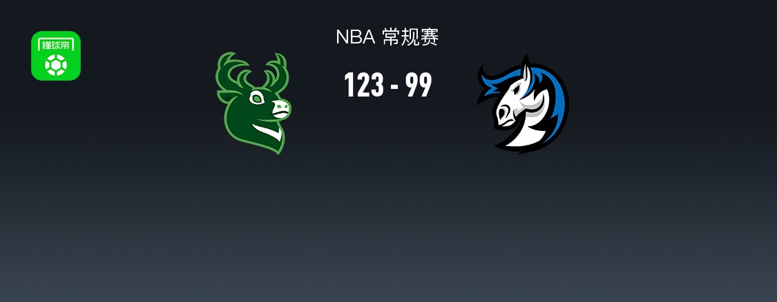 第四节雄鹿皮特-南斯拿下9分,独行侠弗拉格拿下7分,最终雄鹿123-99战胜独行侠