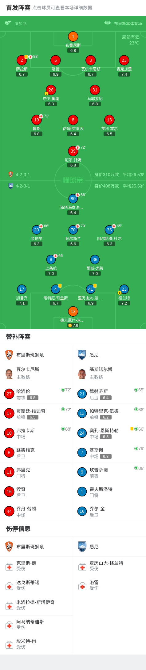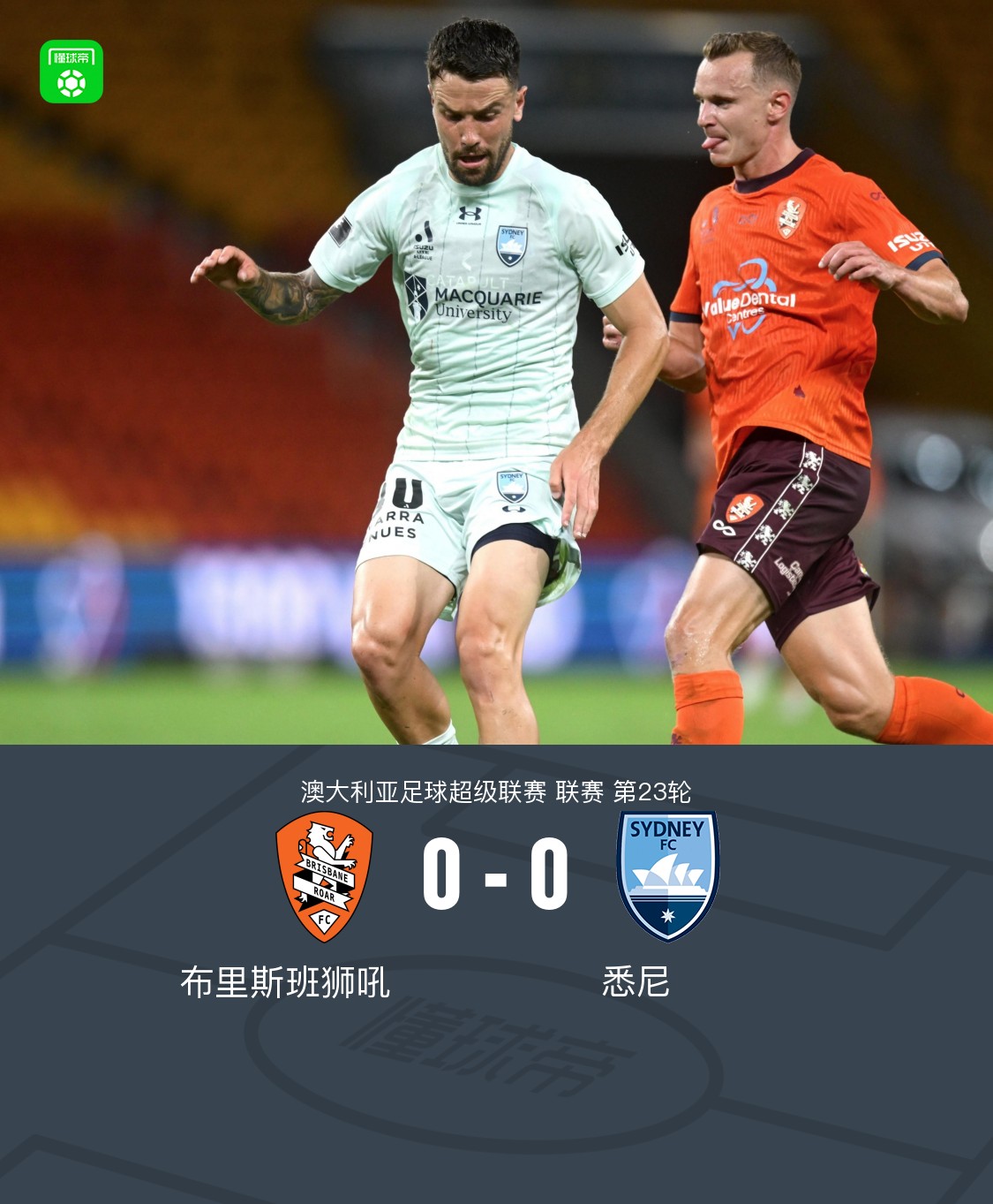 北京时间4月2日澳大利亚足球超级联赛 联赛 第23轮,布里斯班狮吼主场对阵悉尼。最终比分布里斯班狮吼 0–0 悉尼。