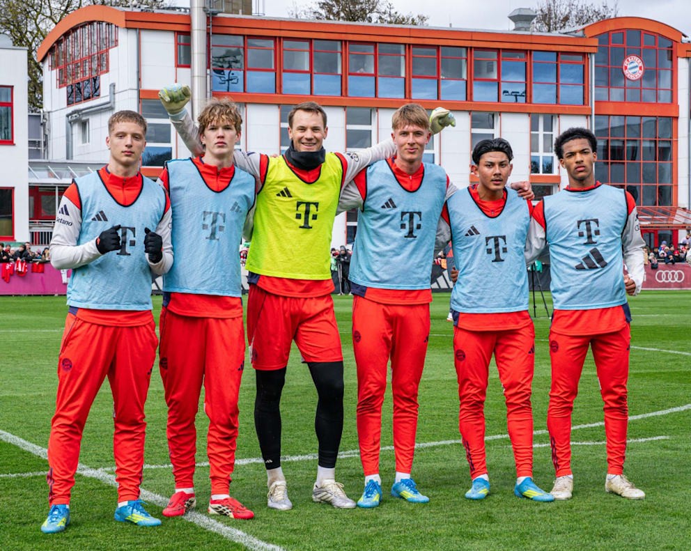 拜仁队长诺伊尔日前在训练结束后与5名青训小将同框,引发外界关注。《图片报》介绍了这5名拜仁新星的身份与背景,其中4人年仅16岁,1人18岁,拜仁近期也正持续让更多青年才俊进入一线队训练。