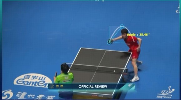 今天张禹珍与松岛辉空的1/8决赛,松岛在第四局11-10获得局点,此时张禹珍发球。张禹珍刚发完球,松岛就起身向裁判示意发起挑战,回放显示张禹珍的发球回抛角度达到35.46度,大幅超过规则限制的30度,于是鹰眼就这么“帮助”松岛辉空拿下了关键一局。