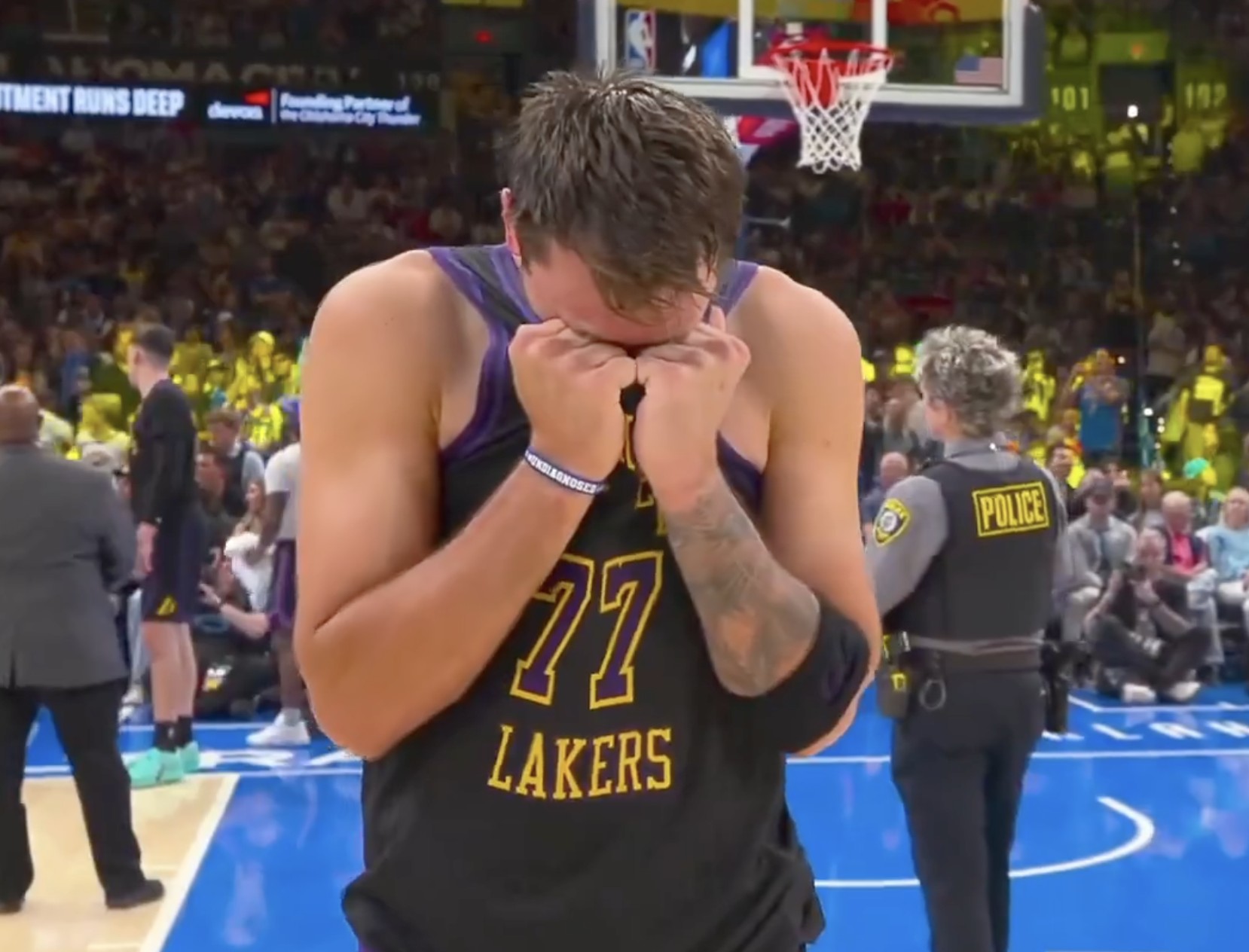 第三节比赛中,东契奇在一次无对抗的进攻中意外受伤。他面对防守准备停球投篮时,左腿突然感到不适。东契奇随即放弃进攻,捂着自己的大腿后侧,随后躺倒在地,脸上露出痛苦的表情。此后,他返回了更衣室。