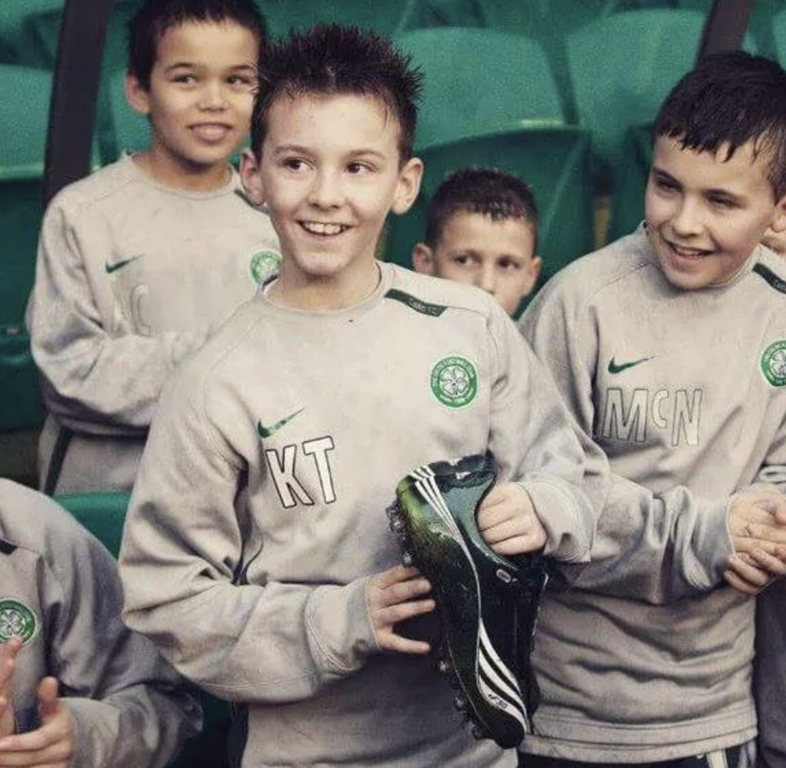 让我们先把时间拉回到2006年的某天,蒂尔尼和凯尔特人U11的队友们受邀来到凯尔特人公园,参加由中村俊辅指导的特别训练课。在一系列控球游戏中,蒂尔尼凭借娴熟的技术和细腻的控球让日本球星眼前一亮。以至于在训练结束后,满脸稚气的蒂尔尼得到了中村赠送的球靴作为奖励。