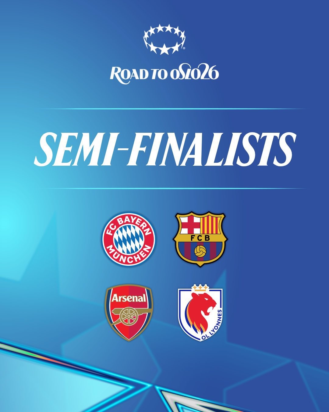 四强球队里,阿森纳女足是卫冕冠军,曾经获得2次冠军。巴萨女足连续5年进入决赛,历史战绩3冠3亚。里昂女足是赛事霸主,8次夺冠3次亚军。拜仁女足第3次晋级四强,还从未杀进过决赛。