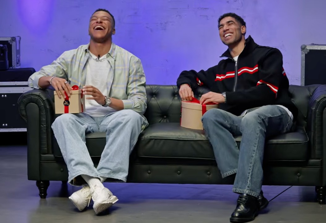 主持人赫里伯特:大家好,欢迎来到《The Bridge》第3季第1期。欢迎基利安,欢迎阿什拉夫,欢迎马利克。也欢迎这一季会一直陪着我的几位搭档。谢谢你们愿意来,加入这个大家庭。在《The Bridge》,我们一直很喜欢替嘉宾之间找连接点,你们三个之间也一样。说实话,这次特别好找,因为所有人都知道,你们之间的感情一直很深。这一点我们后面还会聊。所以今天这期节目,肯定会很好看。既然是好节目,那当然也得有礼物。低头看看,你们脚边都有。弯腰拿起来吧。一共三份礼物。