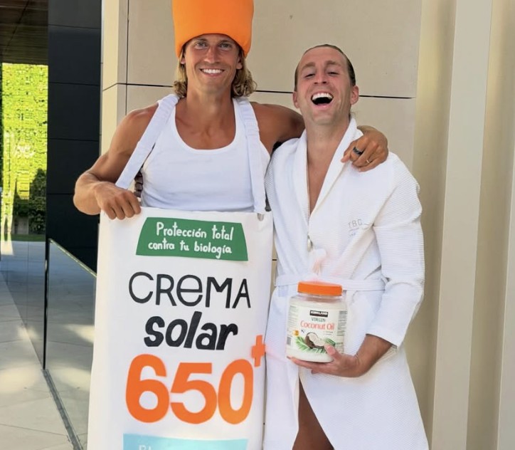 近日,马科斯-略伦特把自己打扮成了一瓶防晒霜,目的是在圣周期间(复活节之前的一周,为天主教重要节日,用于纪念耶稣基督的受难、死亡与复活)提醒人们不要盲目使用防晒霜,并科普如何正确晒太阳,无论是在海滩还是山间。